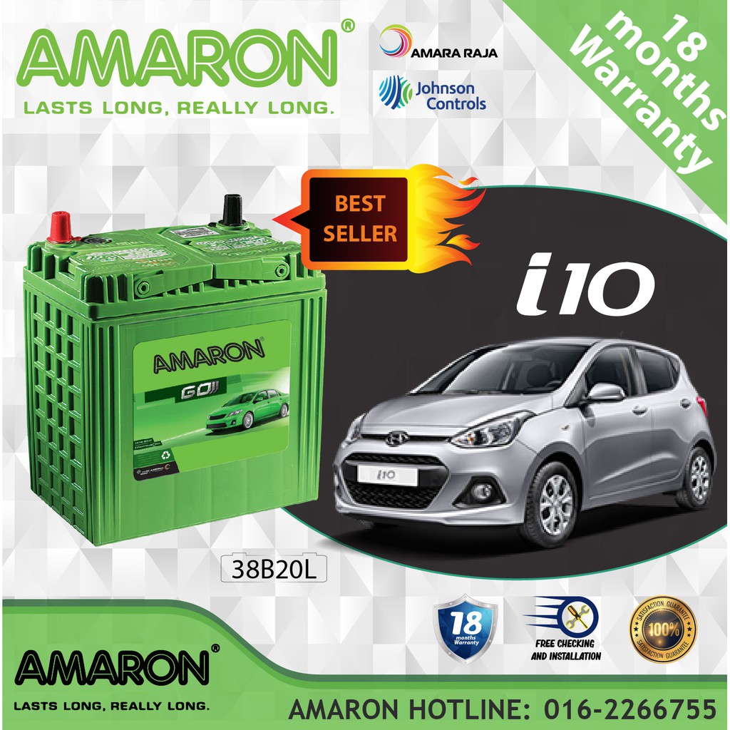 Hyundai I10 Amaron Go 38b20l Ns40zl Car Battery Bateri Kereta Shopee Malaysia